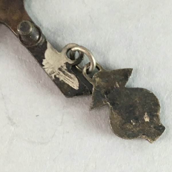 • Fair condition considering its age. Pickaxe handle is broken off. Missing clasp. Wear and tear due to age. Please see the photos.