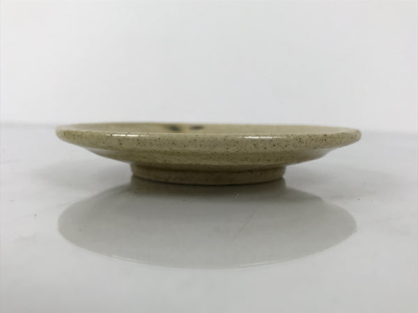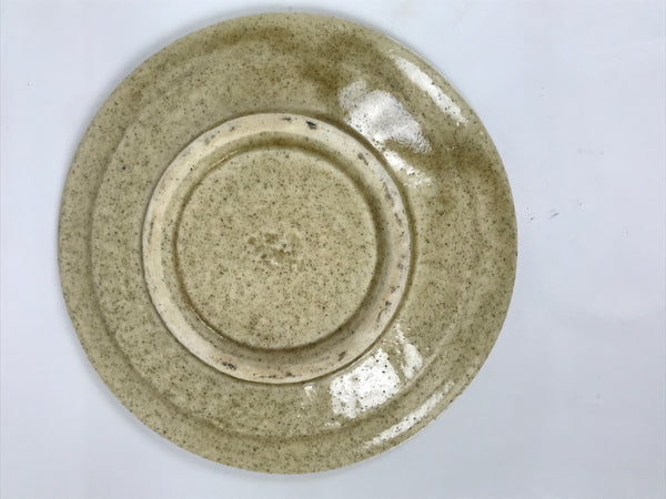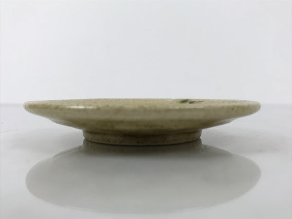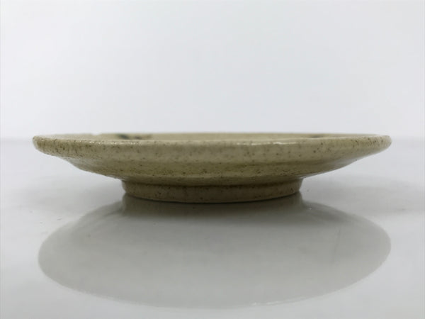 Japanese Ceramic Small Plate Mamezara Side Dish Vtg Beige Green Plants Y467