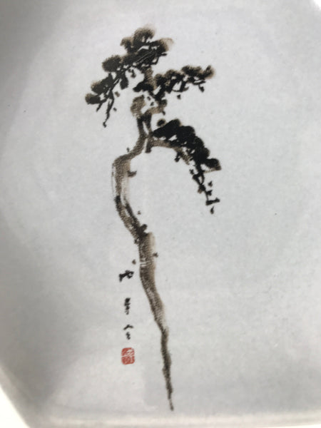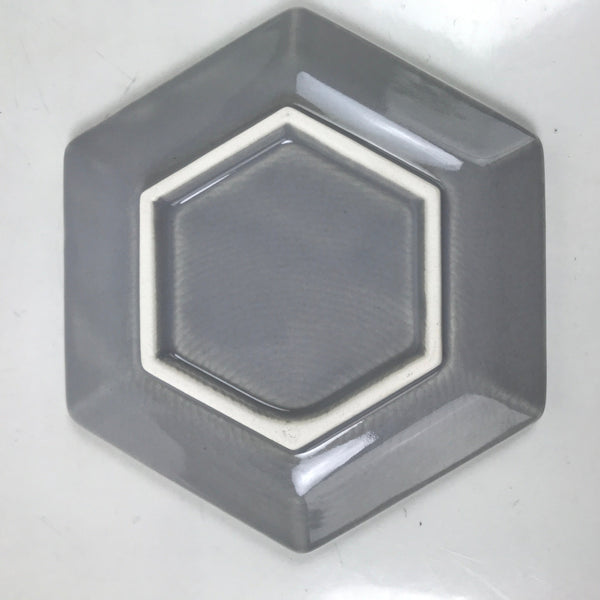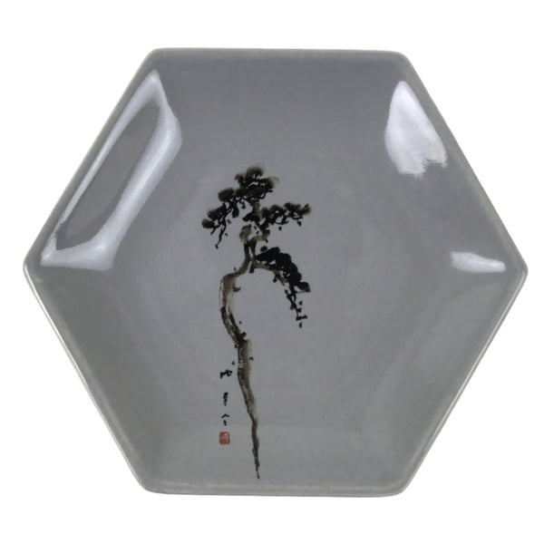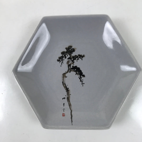 Japanese Porcelain Small Serving Plate Meimeizara Hexagon Pine Tree Gray Y217