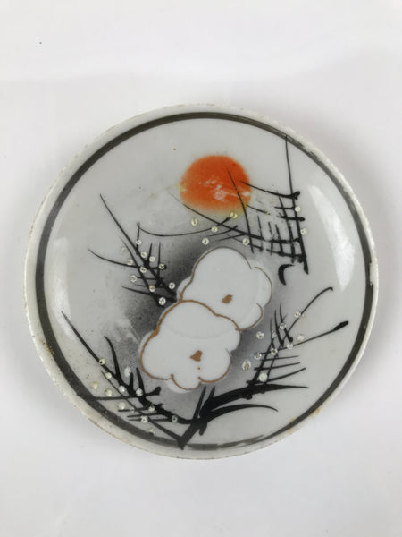 Japanese Porcelain Small Plate Kozara Vtg Plum Blossom Sun Black White PY715
