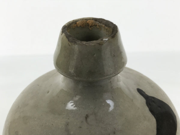 Antique Japanese Ceramic Sake Bottle Kayoi-Tokkuri Gray Kanji Cork Nishio TS861