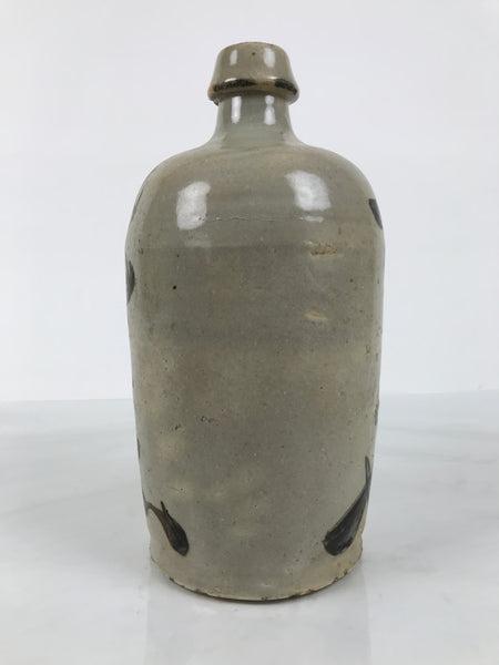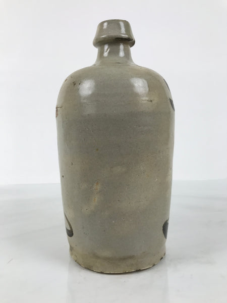 Antique Japanese Ceramic Sake Bottle Kayoi-Tokkuri Gray Kanji Suzukiya TS867