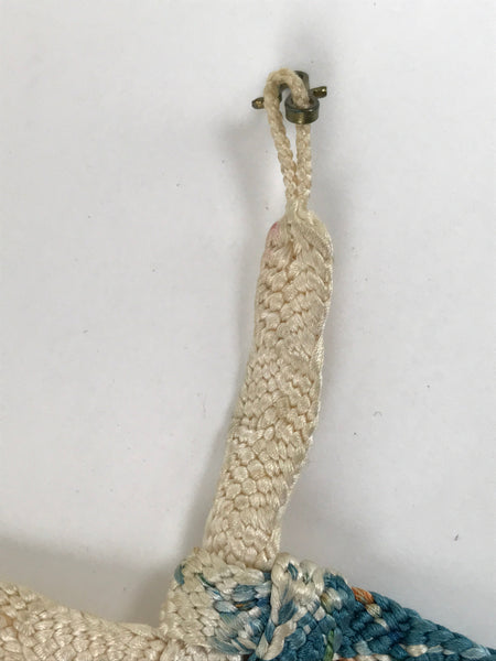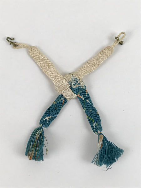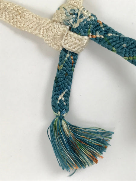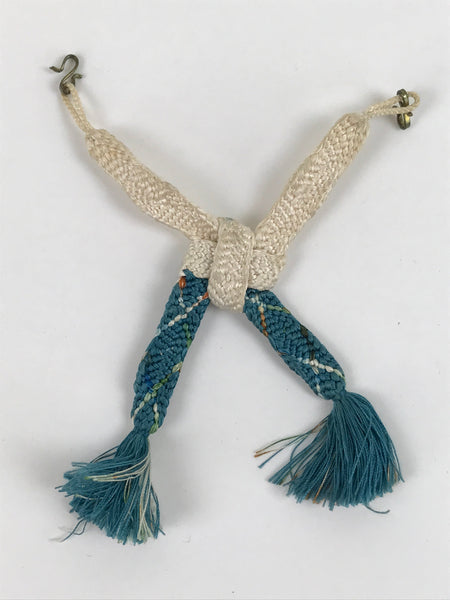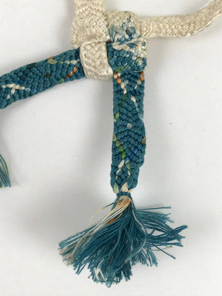 Japanese Haori Himo Kimono Jacket Accessory Vtg Silk Kumihimo White Blue OJ200