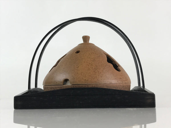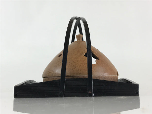 Japanese Ceramic Mosquito Coil Holder And Wooded Tray Vtg Iron Glaze PX629