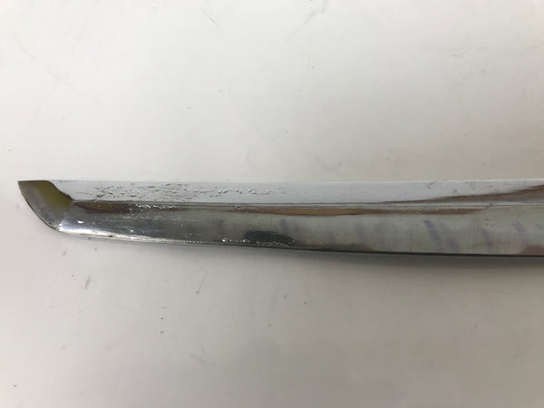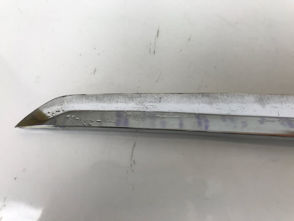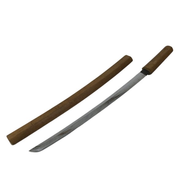 This is a vintage Japanese decorative imitation short blade samurai sword. The blade is made of metal crafted to look like a sharpened edge (not sharp). The sheath and handle is made of smooth sanded wood.