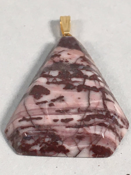 Japanese Stone Pendant Vtg Purple Shiny Triangle Gold Parts JK56