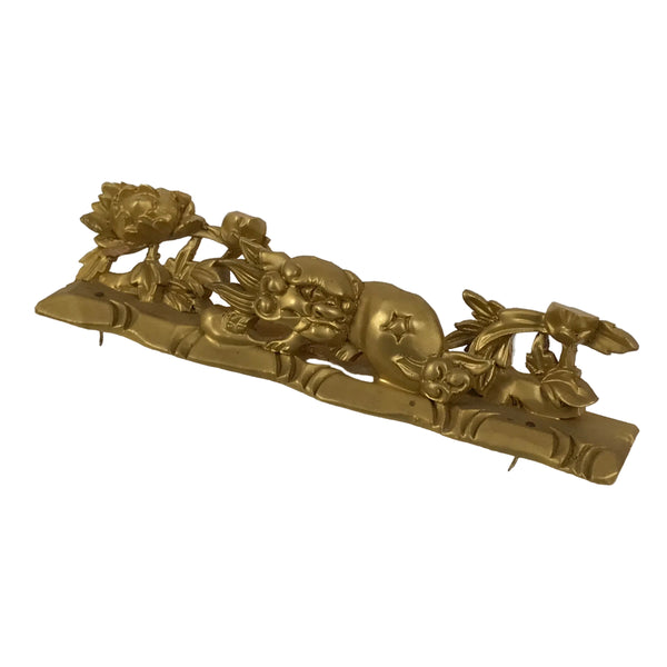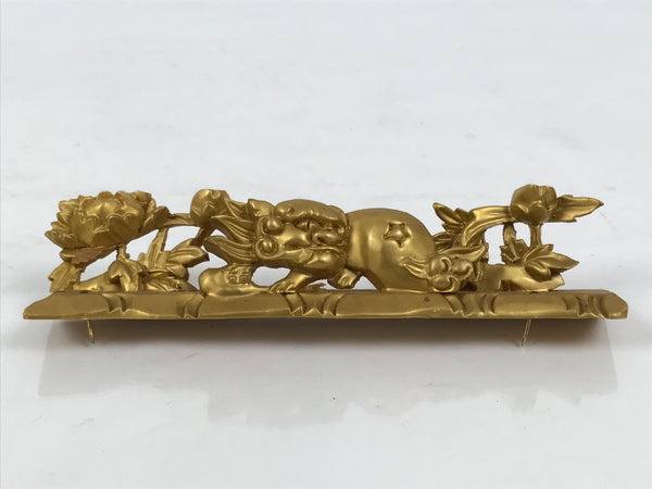 This is a vintage Japanese part of a Buddhist altar. It is a very beautiful decorative item crafted from wood. It features a shishi lion dog, a common image in among Buddhist temples, as well as peony flowers (botan). This piece was originally part of a Buddhist home altar (butsudan). It can be used as a spare part, for repair, or decoration.