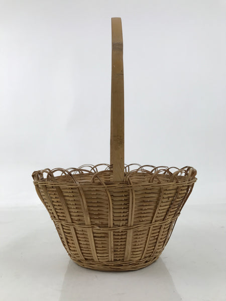 Japanese Handwoven Bamboo Basket Vtg Kago Ikebana Arrangement Handle Brown B261