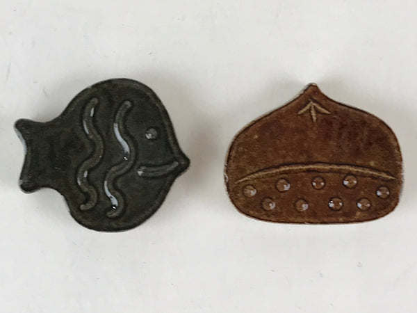 Japanese Porcelain Chopstick Rest Holder 2pc Set Vtg Hashioki Chestnut CR270