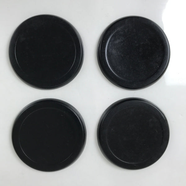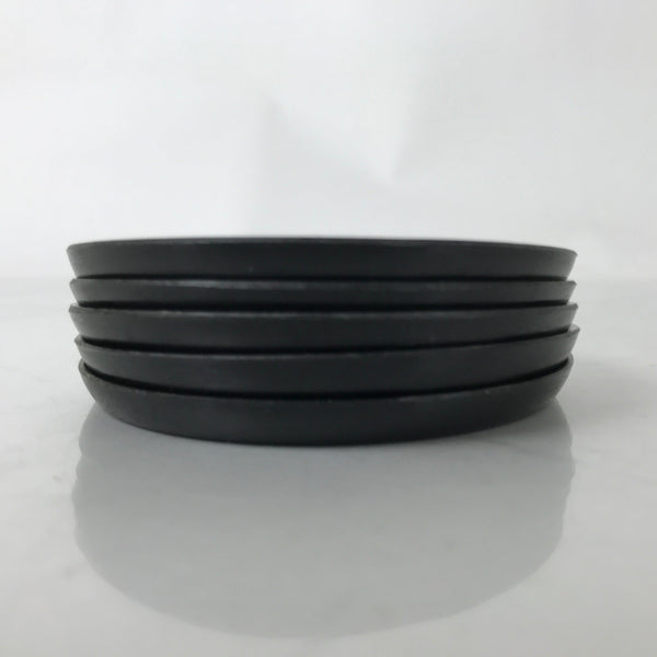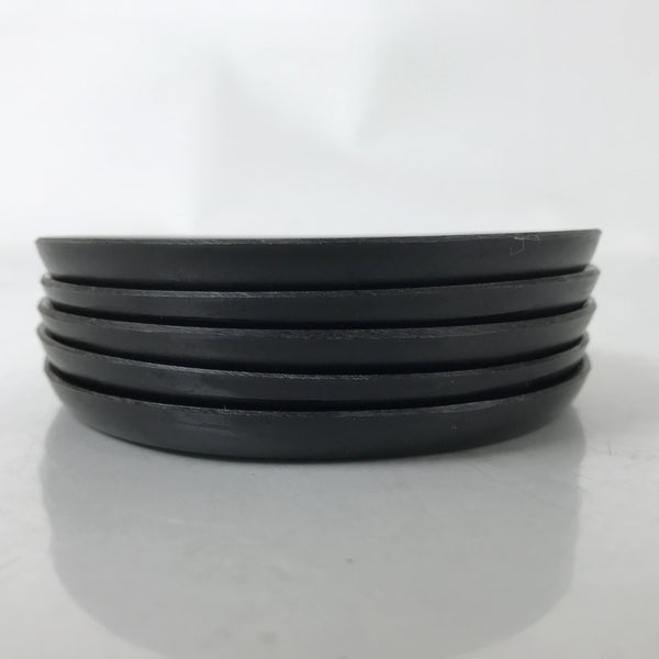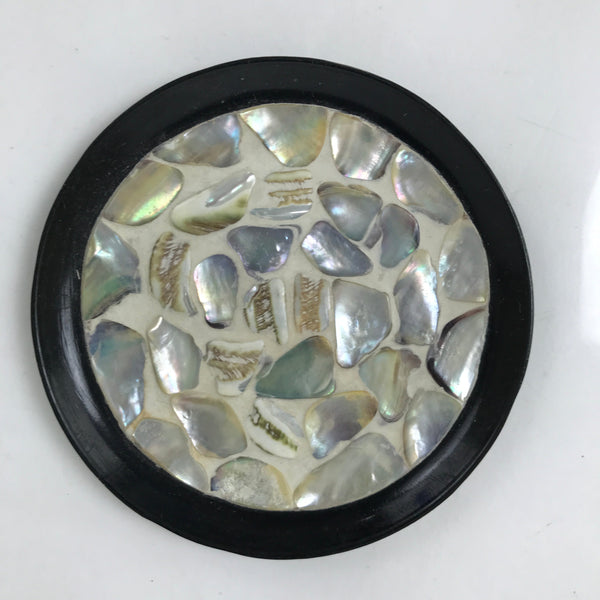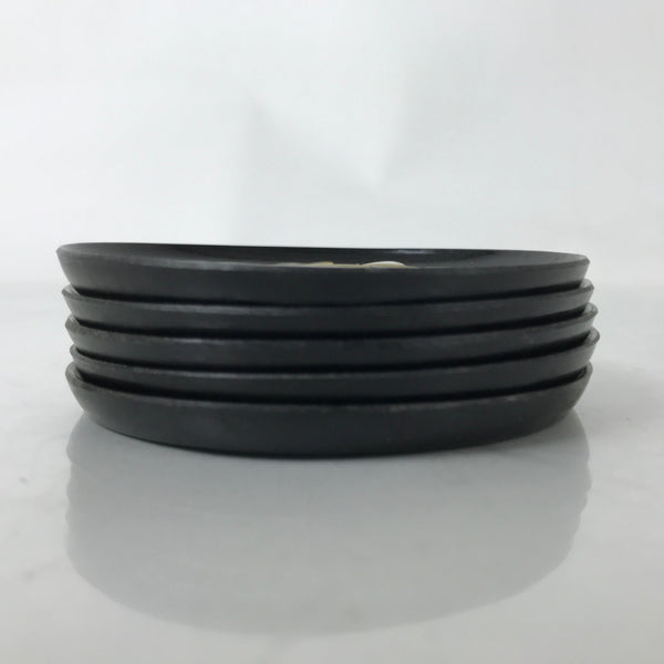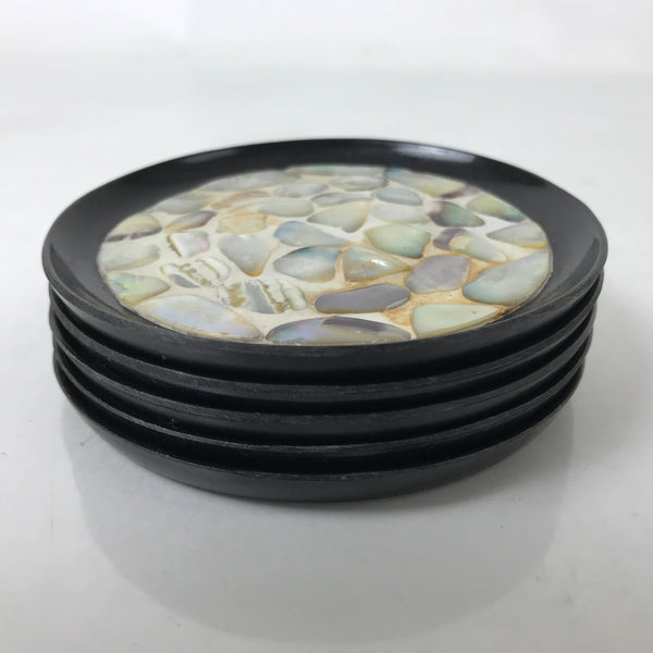 Japanese Abalone Shell Drink Saucer Vtg Chataku Coaster 5pc Black Resin L391