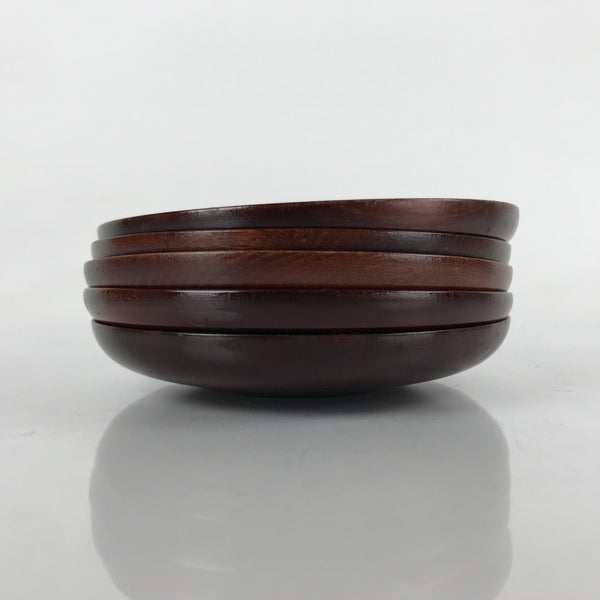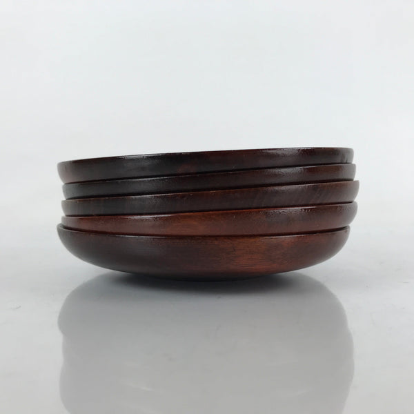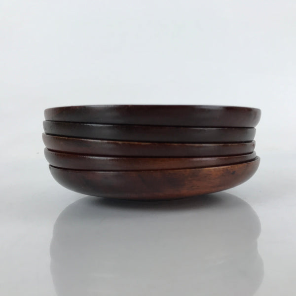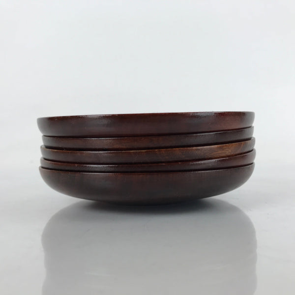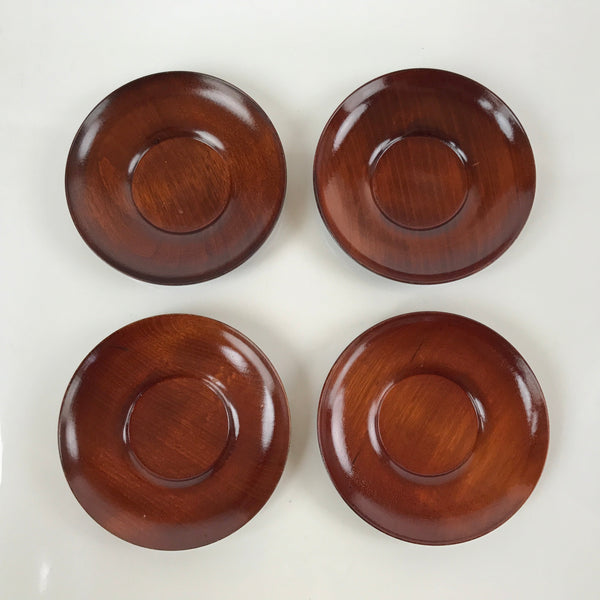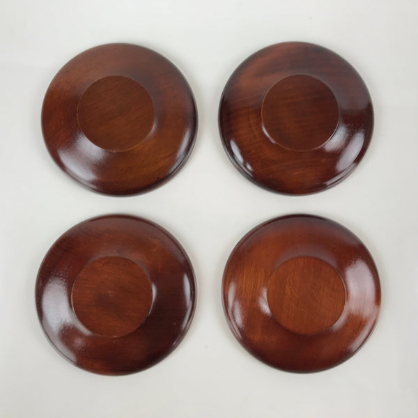 Japanese Brushed Lacquer Wooden Drink Saucer Vtg Chataku Coaster 5pc Brown L237