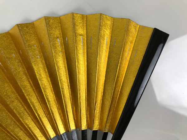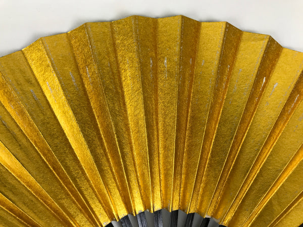 This is a traditional Japanese folding fan called sensu. You can use this when it's hot or as decoration. This small decorative fan is a simple metallic gold foil paper on one side with no designs. The back is silver. The frame is natural bamboo and coated with shiny black lacquer. This is made for formal or ceremonial occasions, such as weddings, and is carried by women. The fan is small and also an excellent addition to tea ceremony sets or for small displays.