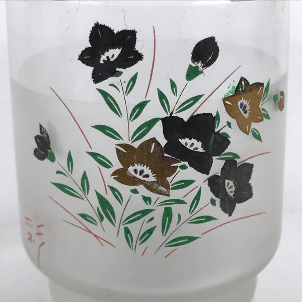 Japanese Frosted Glass Teacup Vtg Black Gold Asagao Flower Yunomi TC446
