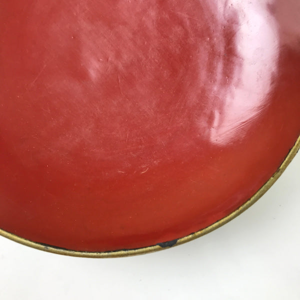 • Okay condition considering age. Some light scratches. Small lacquer chips on rim of lid. Small spot inside bowl where lacquer has chipped off. Wear and tear due to age. Please see the photos.