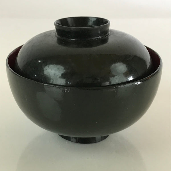 Japanese Lacquerware Lidded Bowl Vtg Urushi Green Red Owan Soup Rice LB25