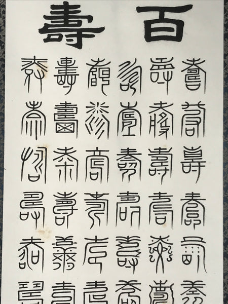 Japanese Boxed Hanging Scroll Kakejiku 100 Longevity Hyakujyu Calligraphy KJ163