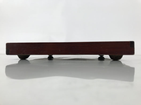 Antique Japanese Wood Lacquered Low Table Brown Serving Tray Ozen Kurumizen L502