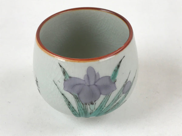 Japanese Ceramic Teacup Vtg Iris Flower Crackle Glaze White Yunomi Sencha TC415