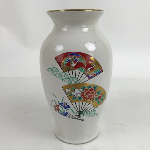 Japanese Porcelain Flower Vase Vtg Ikebana Kabin Sensu Folding Fan White FK133