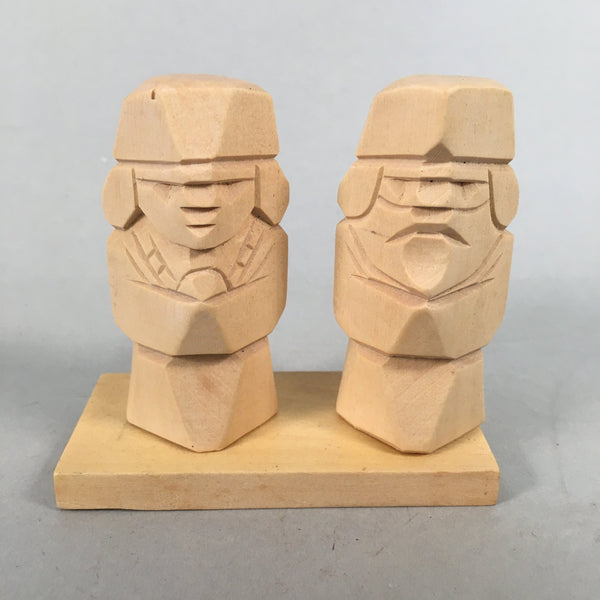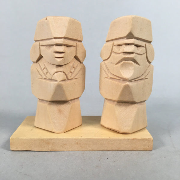 Japanese Kokeshi Wooden Doll 2pc Vtg Figurine Ainu Carving Set KF548