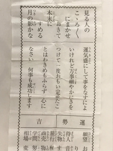 • Omikuji paper inside the doll: Luck. If you think once and act instead of momentum, you will succeed.