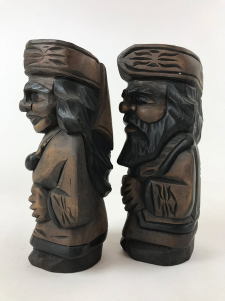 Vtg Japanese Ainu Wood-Carved Statue Okimono Pair