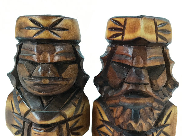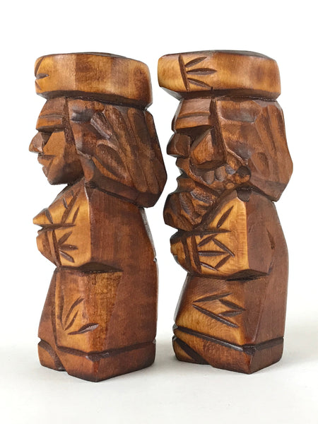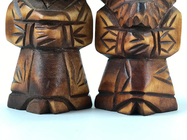 Vtg Japanese Ainu Wood-Carved Statue Okimono Pair