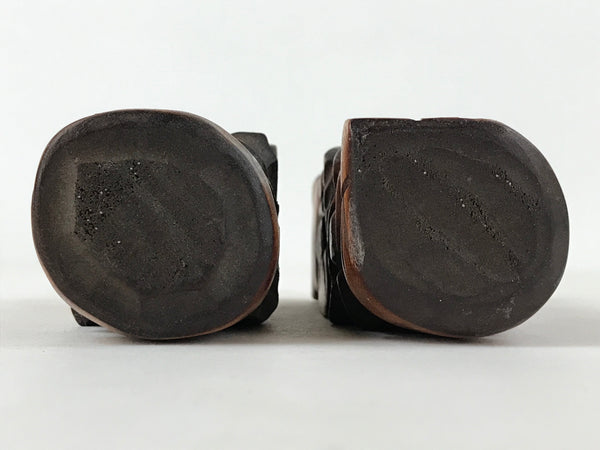 Japanese Wooden Ainu Nipopo Statue Vtg 2pc Small Okimono Hokkaido Brown AB110
