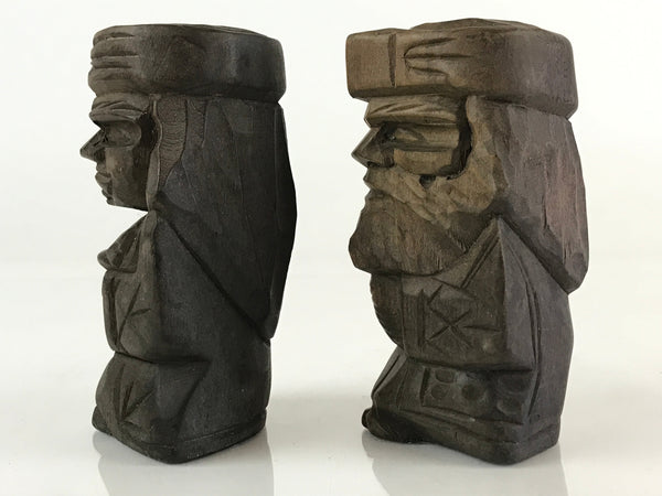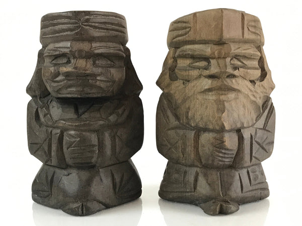 Japanese Wooden Hokkaido Statue Ainu Nipopo 2pc Set Vtg Okimono Brown AB98