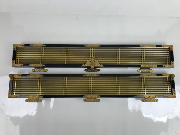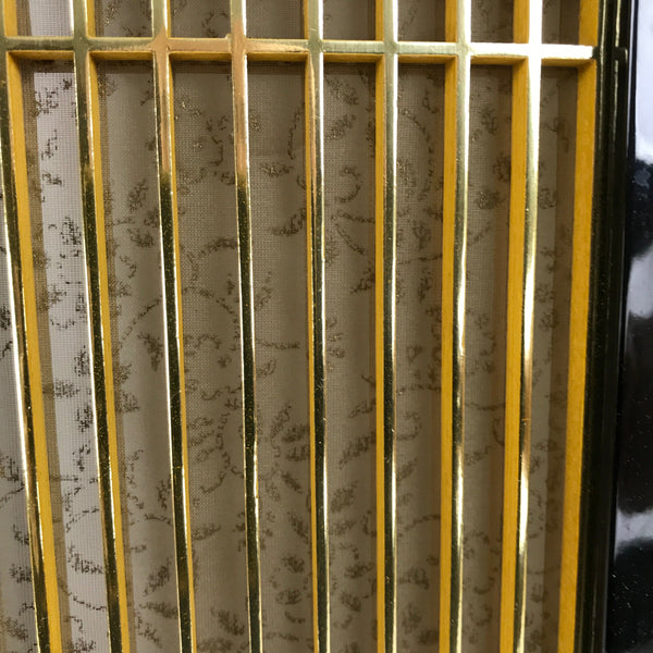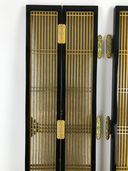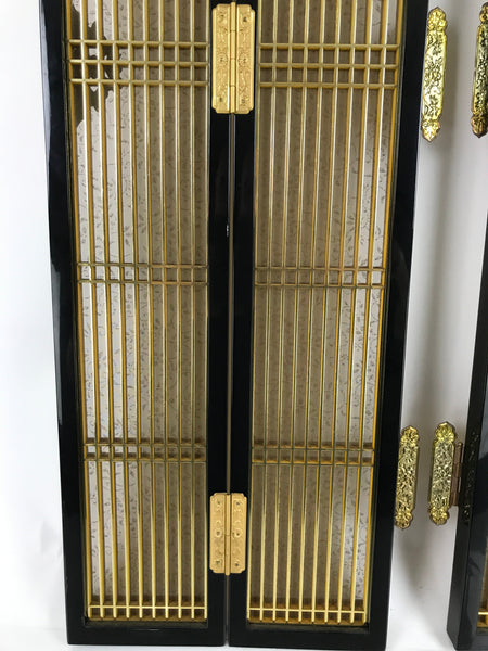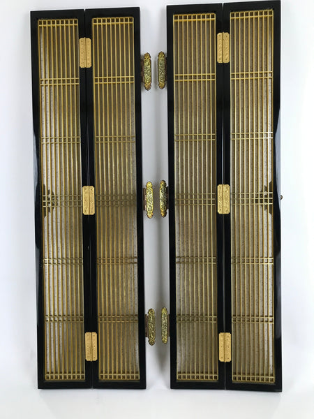 Japanese Buddhist Altar Part Inner Door Lacquer Panel Vtg Brass Black Gold BA437