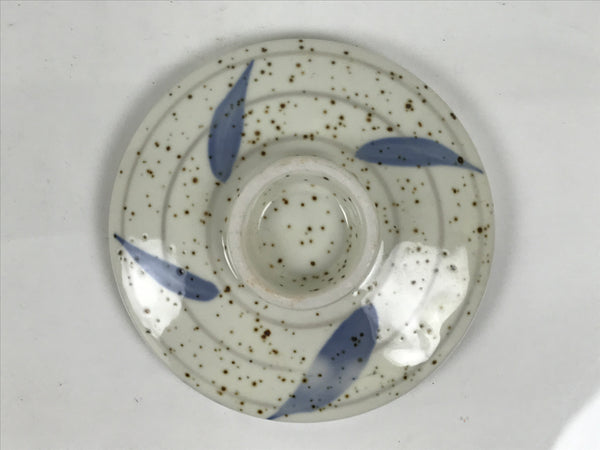 This piece is white with brown specks and features blue bamboo leaves and a gray round band lines throughout.