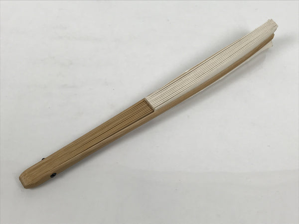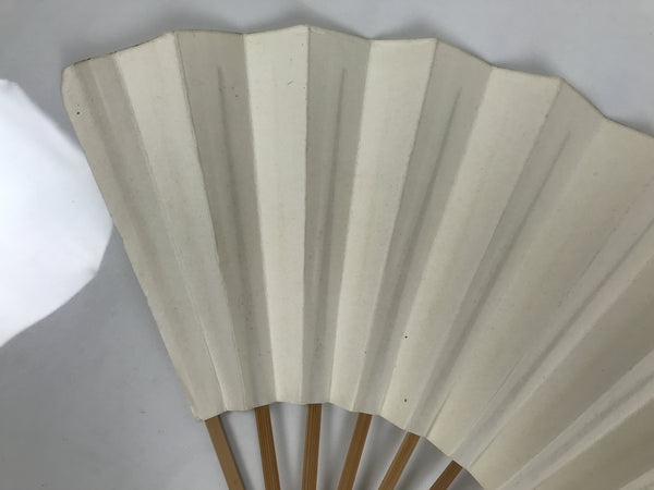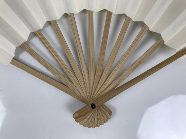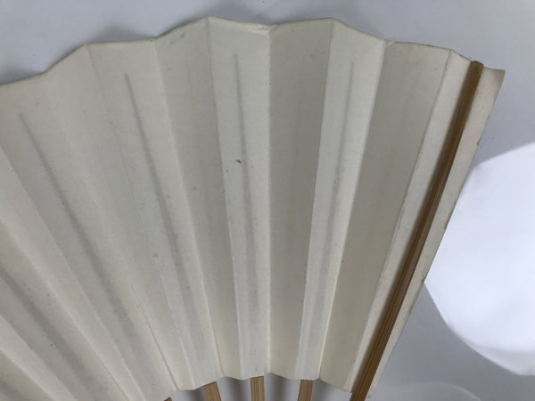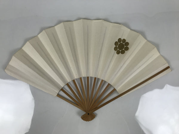 This is a traditional Japanese folding fan called sensu. You can use this when it's hot or as decoration. Both sides are solid white with the front side featuring a kamon family crest in the shape of an abstract chrysanthemum. This particular style of chrysanthemum is more modernly used in tea ceremony and in the performing arts. This fan is perfect for DIY, painting, and drawing. The frame is made of natural bamboo.