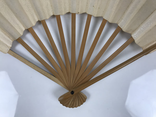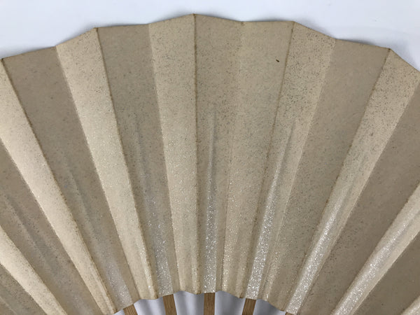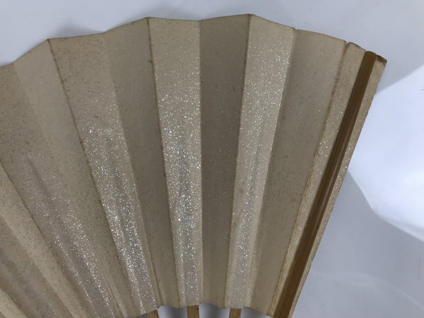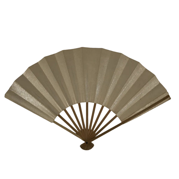 This is a traditional Japanese folding fan called sensu. You can use this when it's hot or as decoration. Both sides are beige with silver speckles and are blank. This fan is perfect for DIY, painting, and drawing. The frame is made of natural bamboo.