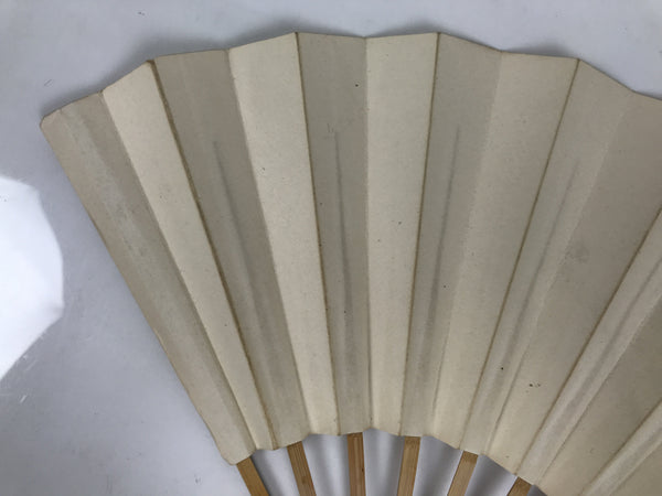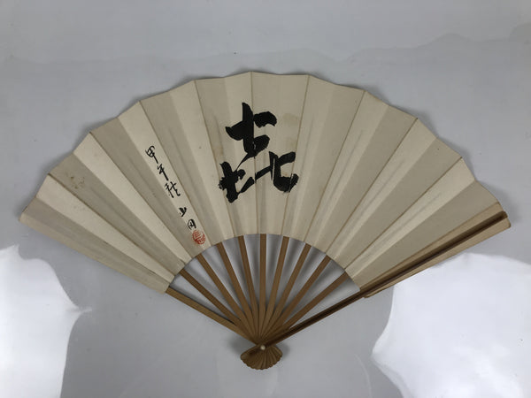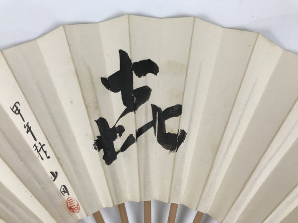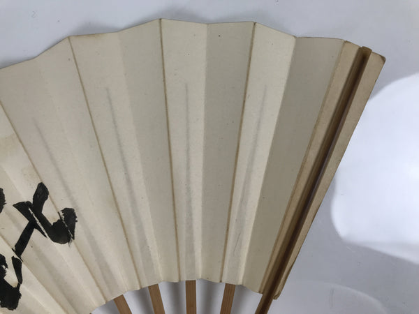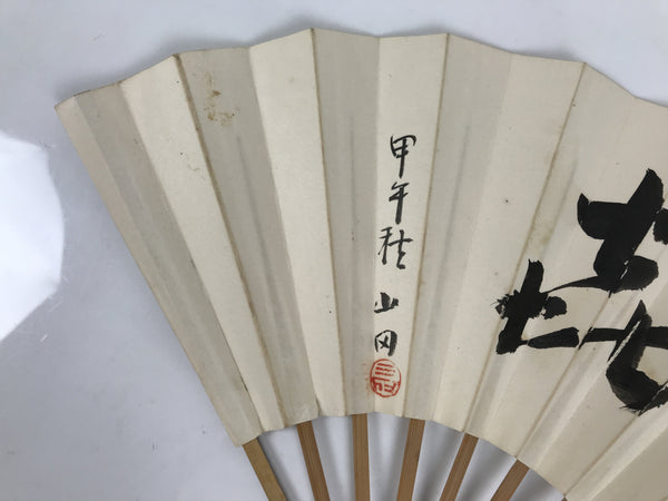 Japanese Paper Folding Fan Sensu Vtg Bamboo Frame White Kanji Calligraphy 5D29